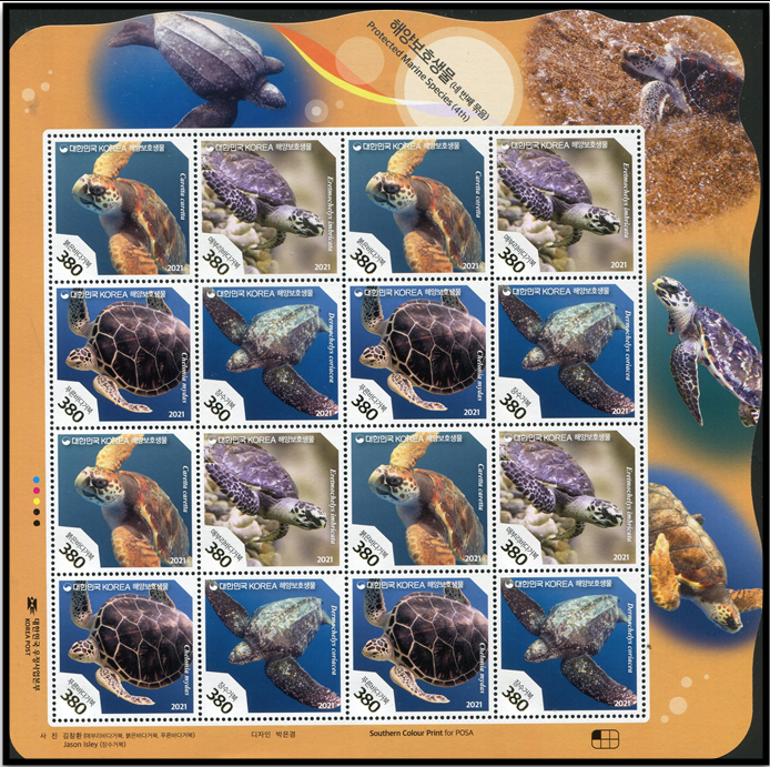 발행일 : 2021. 5. 31. 우표번호 : 3512 ~ 3515. 디자인 : 붉은바다거북. 매부리바다거북.