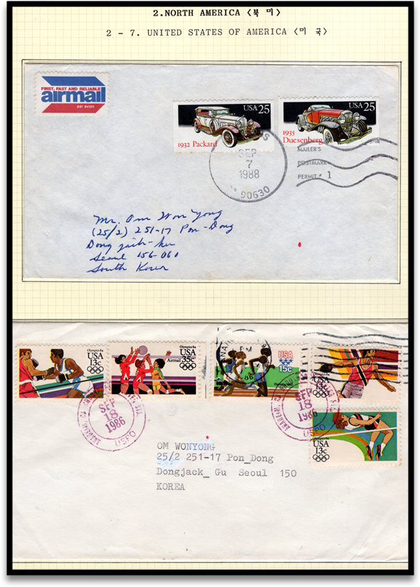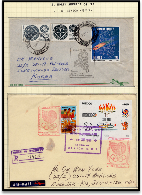 1980년대 중반 세계 스포츠우표 수집가들은 한국의 88서울올림픽 우표 수집을 목적으로 한국의 공룡우표매니아에게 보내온 커버들을 소개합니다. 당시 미수교국(대부분 공산권)을 포함 110여개국이 넘었으나 여기에선 77개국 커버만 보여드립니다. 당시 인기리에 발행된 서울 올림픽우표는 우표값 + 부과금 = 이여서 부담이 컸던 기역만 남아 있네요 지금은..
