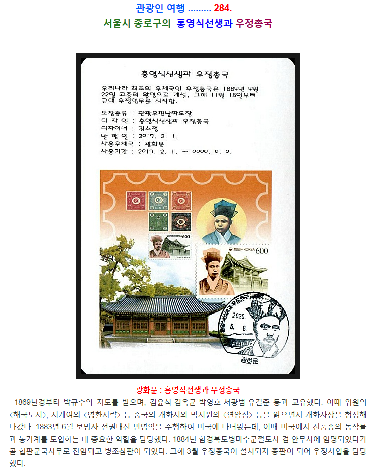 관광인 여행 ......... 284. 서울시 종로구의 홍영식선생과 우정총국