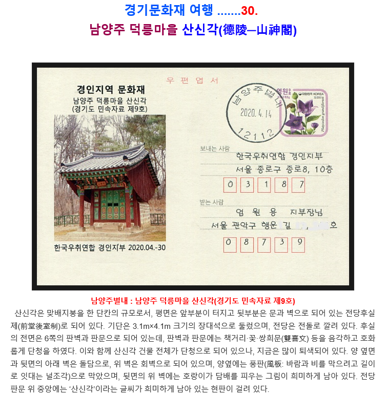 경기문화재 여행 .......30. 남양주 덕릉마을 산신각