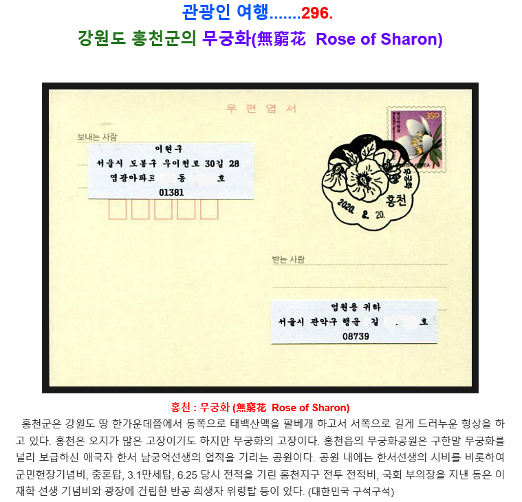 관광인 여행 ....... 296. 강원도 홍천군의 무궁화(Rose of Sharon)