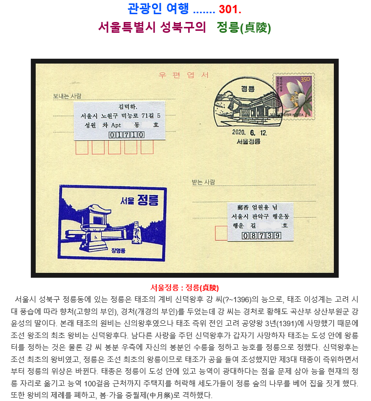 관광인 여행 ....... 301. 서울시 성북구의 정릉(貞陵 사적 제208호)