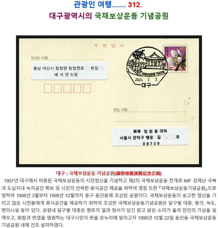 관광인 여행....... 312. 대구광역시의 국채보상운동 기념공원