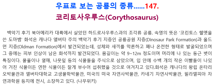 우표로 보는 공룡의 종류.......147. 코리토사우루스(Corythosaurus) 가실때 ♡ 공감 살짝 눌러주고 가세요~~ 감사합니다 우표로 보는 공룡의 종류 2020.08.24