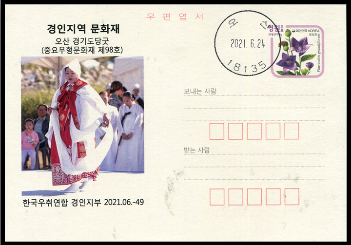 경기문화재 여행 .....49. 오산시 경기도당굿(중요무형문화재 제 98 호) 오산시 경기도당굿(중요무형문화재 제 98 호) 중요무형문화재 제98호인 경기도당굿은 서울을 비롯한 한강 이북지방과 수원, 인천 등지에서 마을의 평화와 풍년을 목적으로 하는 마을굿이다. 도당굿은 매년 또는 2년이나 그 이상의 해를 걸러, 정월 초나 봄과 가을에 정기적으로 행해지는 굿을 말한다. 현재의 경기도당굿은 경기도 일대의 한강 이남지역에 전해져 오는 마을굿으로, 지금은 부천의 장말에서만 완전한 형태의 경기도당굿을 볼 수 있다. 경기도당굿의 정확한 기원은 알 수 없다. 하지만 마을 동산의 소나무 숲 등에 300년이 넘었다고 전해지는 도당할아버지와 할머니를 모신 ‘당가리’나, 도당신을 상징하는 신목 등이 있는 것으로 보아 조선..