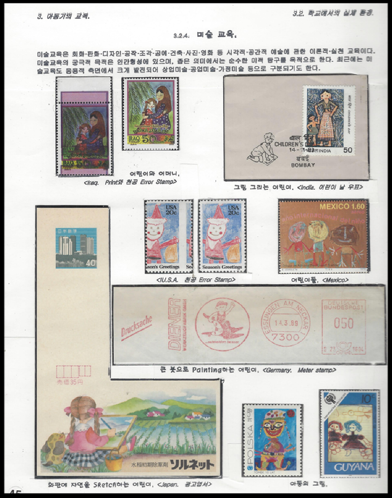 축복 속의 출생과 양육의 기쁨........15. 3. 아동기의 교육 3-4. 미술교육(美術敎育). 3-5. 음악교육(音樂敎育). 3-6. 무용교육(舞踊敎育). 3-7. 체육교육(體育敎育) 3 - 4. 미술 교육(美術敎育). 영유아를 위한 미술활동을 특수한 기술 습득이나 묘사, 완벽하게 완성된 결과위주의 미술활동이 되어서는 안된다. 따라서 『미술교육』은 영유아가 주변 환경과의 상호작용을 통해 가지게 되는 자신의 생각과 느낌을 다양한 매체를 활용하여 다양한 방식으로 자연스럽게 표현할 수 있도록 하는 마음을 담을 수 있게 하여야 한다. (이민경님의 미술교육(영아 유아를 위한) 책소개) 3 - 5. 음악 교육(音樂敎育) 음악 교육이 아동 청소년들에게 미치는 영향은 심리학 분야에서활발히 연구되는 분야중 하나이다..