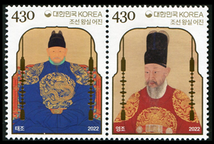 조선 왕실 어진(태조. 영조). 기념우표 발행 우표 명칭 : 조선 왕실 어진 종수 : 2종 우표발행일 : 2022. 2. 7. 우표번호 : 3563 ~ 3564 디자인 : 조선 태조 어진. 조선 영조 어진. 디자이너 : 김미화 인쇄/색수/특수처리 : 평판/4도.금분/금박 용지 : 평판 원지 인쇄처 : 한국우편사업진흥원/Cartor (Cartor for POSA) ‘어진’은 왕의 모습을 그린 초상화를 의미하며, 그중 조선 시대 어진은 초상화 이상의 의미를 지니고 있습니다. 이는 임금이 정치적 위기에 처했을 때 정통성을 상징하는 태조 이성계의 어진을 새로 제작하고 봉안했다는 기록을 통해 알 수 있습니다. 우정사업본부는 이처럼 임금과 왕실의 권위를 상징하는 어진을 소재로 하여 ‘조선 왕실 어진’ 기념우표를 발..