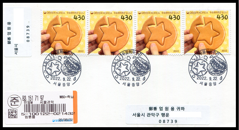우표취미주간 기념우표. 초일 자료(M/C). (FDC) 발행일 : 2022. 9. 22. 우표번호 : 3616 ~ 3617 디자인 : 달고나. 씨앗호떡 디자이너 : 박은경 인쇄 / 색수 / 특수처리 : 평판 / 4도 / 금박 용지 : 평판 원지 발행량 : 640,000장 인쇄처 : 한국우편사업진흥원 / Cartor 우정사업본부는 우표 수집과 우정문화를 즐기는 애호가들을 위해 1973년부터 우표취미주간을 선정하여 기념하고 있습니다. 올해는 9월 22일부터 10월 20일까지를 우표취미주간으로 지정하고 ‘대한민국 우표전시회’를 개최합니다. 이에 한국의 길거리 음식을 주제로 기념우표를 발행합니다. # 3616. 달고나 # 3617. 씨앗호떡 (M/C) 달고나’는 설탕과 소다를 넣어 만든 매력적인 한국의 길거리 ..