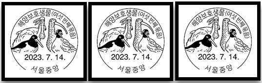 해양보호생물(여섯 번째 묶음) 발행 우표발행일 : 2023년 7월 14일. 명칭 : 해양보호생물(여섯 번째 묶움) 우표번호 : 3699 ~ 3702. 디자이너 : 박은경. 발행량 : 총 624.000장. 디자인 : 검은머리갈매기. 검은머리 물떼새. 알락꼬리마도요. 저어새. 액면가격 : 430원. 인쇄 / 색수 / 특수처리 : 평판 / 4도. 금박. 전지구성 : (4 X 4)(160mm X 180mm). 용지 : 평판 원지. 인쇄처 : 한국우편사업진흥원 / RoyalJoh. Ensched 다음 발행 우표 : 대한독립에 헌신한 외국인. 2023. 8. 14일 우리나라는 지속적인 생존이 어렵다고 판단되거나 보호 조치가 필요한 해양생물을 ‘해양보호생물’로 지정하여 관리하고 있습니다. 2023년 2월 기준, ‘해..