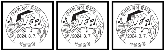 한국의 창작 뮤지컬. 기념우표 초일자료 소개 초일. 맥시멈카드(M/C). 초일커버(FDC). 소개 우표발행일 : 2024년 3월 7일. 우표번호 : 3729. 3730. 3731. 3732.(4종) 명 칭 : 한국의 창작 뮤지컬. 디자이너 : 박은경. 디자인 : 프랑켄슈타인. 펜레터. 어쩌면 해피엔딩. 웃는 남자. 발 행 량 : 총 576.000장. 용 지 : 평판 원지. 우표크기 : 25.05mm x 45mm. 인면 : 22.05mm x 43.5mm. 액면가격 : 430원. 인쇄 / 색수/특수처리 : 평판 / 4도. 금분 / 금박 전지구성 : (6 X 2) (175mm X 137mm). 천공(생략) 인 쇄 처 : 한국우편사업진흥원 / Cartor 다음 발행 우표 : 헌종가례진하도 병풍, 2024년 3월..