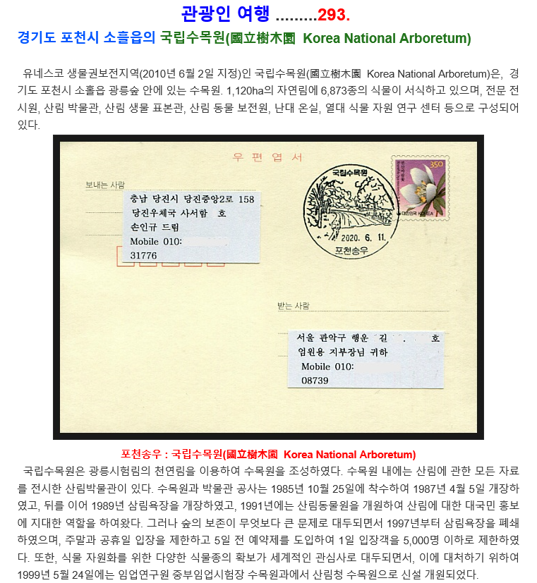 가고싶은 여행지 포천. 국립수목원 가고싶은 여행지 포천. 국립수목원 포천송우 : 국립수목원 국립수목원은 광릉시험림의 천연림을 이용하여 수목원을 조성하였다. 수목원 내에는 산림에 관한 모든 자료를 전시한 산림박물관이 있다. 수목원과 박물관 공사는 1985년 10월 25일에 착수하여 1987년 4월 5일 개장하였고, 뒤를 이어.. 관광인, 실체교류 2017.05.09